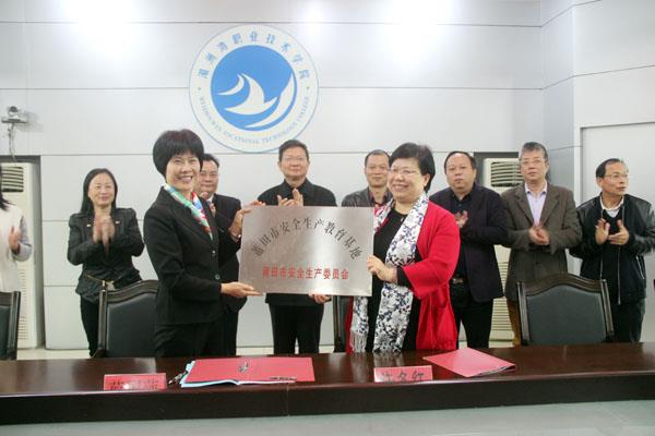 为深入贯彻落实党的十九大精神,探索高等院校为地方经济建设和社会发展服务新途径,促进地方院校与行政部门优势互补、双向推动、协同发展,形成人才、技术、资源的共享与互动,实现安全生产工作的关口前移,市安全生产监督管理局与湄洲湾职业技术学院围绕合作建设“一基地、两中心、三平台”工作,1月23日上午,市安全生产监督管理局与湄洲湾职业技术学院共同举行校地战略合作协议签订仪式,并举行莆田市安全生产教育基地授牌。签订仪式上,校政双方就战略合作事项举行座谈会,与会人员积极建言献策,期间,与会人员还深入湄洲湾职业技术学院实训基地进行参观。