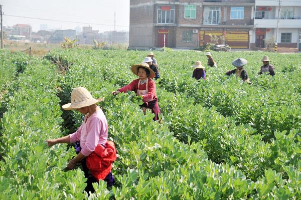 去年冬天,何彩象及他的老乡们在仙游度尾、园庄、赖店、鲤南、龙华、大济等乡镇大规模承包耕地,种植蚕豆有20000多亩,目前正值采收上市季。附近留守村民说:“他们在我们村承包土地种植农作物,我们现在不仅可以收到耕地的租金,而且还可以利用闲时不出远门,在这里打农工”。 (陈国松)