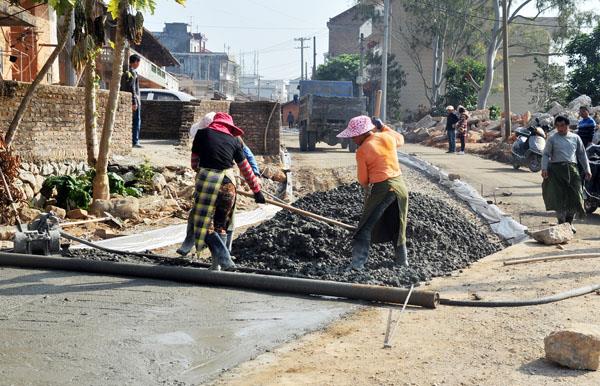 大型挖掘机轰隆轰隆!不停地铺设路面,压路机将路面垫底压实以备浇灌水泥,一辆辆满载砂石水泥浆的车辆繁忙进出工地,水泥搅拌机隆隆地转动,工人们正紧张有序地浇灌水泥道。整个施建工地沸沸腾腾,这是大济镇东井村新农村建设工程有紊不乱进行中。