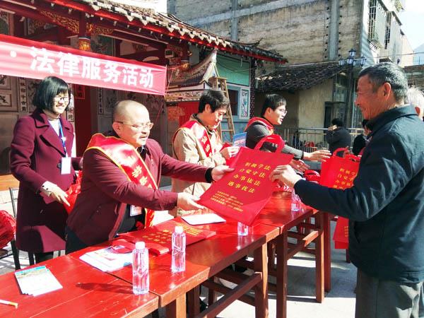 活动现场,县司法局党员干部为官舍村村民们分发印有“积极学法、自觉守法、办事依法、遇事找法”的购物袋、水杯、法治宣传册等普法宣传品,积极开展法治宣传、法律服务活动,获得官舍村两委和广大群众的欢迎! (陈国松)