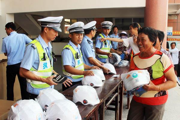 一个头盔满含警民情暖