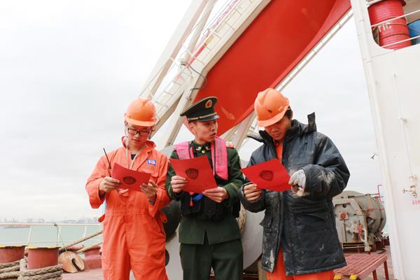 “这是公安部新出台的八项出入境便民措施,你们可以了解一下,在今后的工作中能够更加便利地通关。”1月29日上午,福建公安边防总队莆田边检站利用执勤时机,向在港船员和作业工人详细介绍了公安部八项出入境便民措施的内容及具体应用方法。