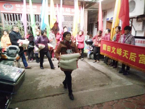 本报讯 新春佳节到来之际,莆田文峰天后宫在传播妈祖文化的同时,遵循妈祖“护国庇民、扶贫济困”的宗旨,发扬妈祖立德、行善、大爱的精神,积极开展扶贫助困送温暖活动。1月29日下午,该宫管委会全体成员前往荔城区凤山、文献、长寿、英龙、梅峰五个社区,为困难群众送去慰问金及大米、食用油等慰问品,向他们致以新春的祝福。