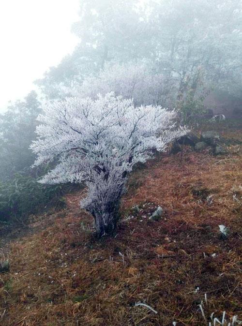 近日,笔者一行驱车赶往西苑乡前溪村,再沿着崎岖的羊肠山路翻山越岭七八公里,费尽九牛之力终于抵达目的地。前行中,越往高处走明显感觉到气温直线降低,远处眼前的山头白茫茫,昔日的青山绿树早已变成雾霭沉沉,可见度只有10米左右。难受的倒是凛冽呼叫狂嚎的山风吹得人直打哆嗦,还好身边的高山上已经挂满了各色漂亮的雾凇,各种造型的雾凇随风摆动十分迷人。大家纷纷拿出手机拍下难得一见的美景。同行前溪村党员邹宗威告诉笔者,如果气温继续下降的话,雾凇美景将持续,这个时候都吸引不少人来游玩,这里已经成为石谷解冬天里一道靓丽的风景线。