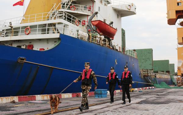 “汪汪汪!”巨大的吼声震天动地,一米多长的“米奇”眼露凶光,在一旁观看的笔者心提到了嗓子眼。“警犬的形象高大威猛,只要往港区限定区域内一站,就自然地散发出震慑力,让不法分子不敢妄动。”李超说,“米奇”这些经过严格训练的警犬,长期在莆田秀屿港出入境码头担任船体检查、港区巡查任务。特别在敏感节点的重要场合,有警犬在外围巡逻,可以减轻边检官兵的压力。