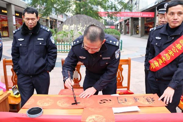 活动共为群众书写春联200余幅,发放各类宣传单500余份,现场气氛热烈,警营书法家们用实实在在的行动、优秀的春联作品为群众营造欢乐祥和的春节气氛。