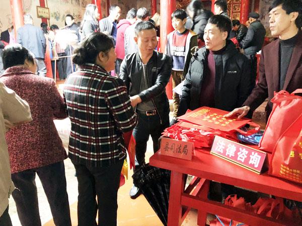 为了能够给盖尾镇东井宫村群众提供更为便捷、专业的法律服务,县司法局副局长林国聪带领司法局干部、东井宫村法律顾问朱贞雄律师在东井宫设立了法律咨询台为群众解答法律问题。对于群众所关注的重点难点法律问题,有针对性地进行引导宣传解答,并提供相关的法律意见。此次活动共解答咨询群众30多人次,发放普法宣传资料300余份。同时分发印有“积极学法、自觉守法、办事依法、遇事找法”的购物袋、法治宣传册、普法信封等宣传品,获得群众的广泛好评,取得良好的普法效果。 (陈国松 黄莺莺)
