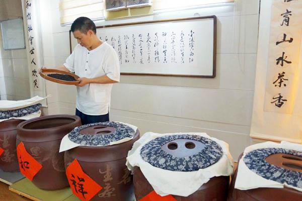 近日,笔者慕名来到上官长垣位于鲤南镇玉塔村的茶研工坊内,但见五个新型炭炉子正烘焙着茶,散发出袅袅茶香,一个个精美细致紫砂缸里,储藏着各类茶叶,随处可见的茶具、满墙的荣誉证书,无不彰显出上官长垣在茶道上的喜爱与成就。在他的窖藏间中,他向笔者展示了多种香气馥郁悠长、滋味醇厚回甘的陈茶,具有极高的收藏意义。