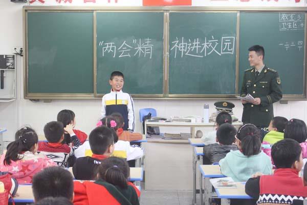 为帮助部队官兵和辖区群众全面了解“两会”精神,营造“两会”精神学习浓厚氛围,3月15日,江口边防派出所结合法制副校长“开学第一课”组织开展““两会”精神进校园”活动,掀起警民共学“两会”、共议“两会”的热潮。期间,该所民警来到辖区江口中心小学,分发“两会”精神学习材料,用浅显易懂的语言向同小朋友们宣讲“两会”精神,并通过提问、课堂讨论等方式,充分调动小朋友们的积极性,活跃课堂气氛,民警还结合自身成长经历勉励同学们珍惜学习机会,努力成才,博得老师同学们的阵阵掌声。课后,该所民警同江口中心小学教职员工通过座谈讨论、交流心得的方式,彼此借鉴在学习全国“两会”精神活动中的先进做法,互相取长补短,促进共同提高,进一步强化了警民双方交流合作成效。 (时报记者 林锦堂 通讯员 陈宇立)