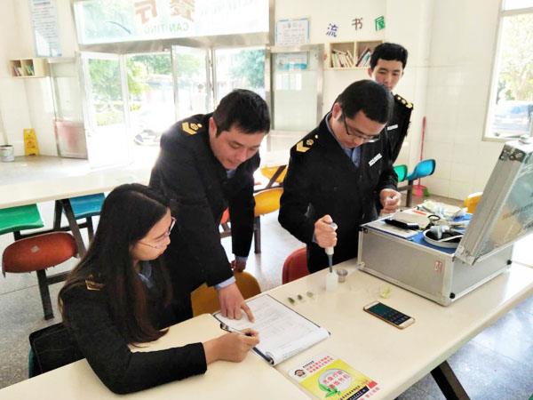 本报讯 为进一步加强学校食堂餐饮服务和食品安全管理工作,落实学校食品安全风险排查要求,近日,西天尾食药监所执法人员携带快检设备,深入辖区学校食堂开展食品安全快速检测活动,对学校食堂当天的蔬菜、肉类等食材开展随机检测,当即快检9个批次,未发现不合格项目。