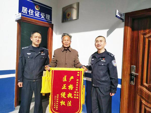 本报讯 3月21日上午,新度派出所收到辖区群众林某义送来的一面烫有“严格执法,匡正侵权”的致谢锦旗,感谢民警为其化解与邻里林某熙的纠纷案。
