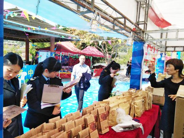 图为龙桥食药监所工作人员在活动现场,对参加活动的食品进行认真检查,要求参加活动经营企业落实食品安全制度,确保消费者食品安全。