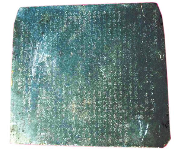 林孺人生于明洪武十五年(1382)八月十七日,景泰二年(1451)十二月十五日卒,享年七十。于景泰七年(1456)十二月二十五日奉柩葬其里山门(今灵川镇山门村)洪林之原。司经局洗马兼翰林院修撰长孙柯潜请太子太傅、户部尚书陈循撰墓志铭文,左春坊左庶子兼翰林院侍讲林文书丹,礼部右侍郎兼詹事府少詹事萨琦篆蓋。其墓志铭高54厘米,宽59厘米。铭文如下: