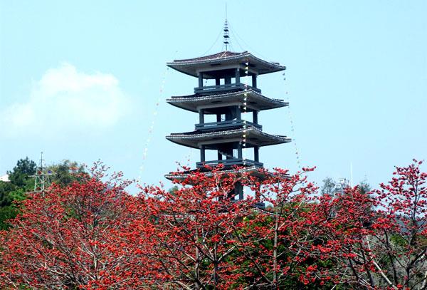 图为凤凰山公园木棉花开正盛。(陈宝柱)