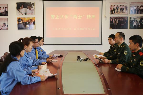 本报讯 为深入学习贯彻和宣传“两会”精神,加强警企间的沟通交流,日前,边防沧溪边防派出所深入辖区福建海安橡胶有限公司,开展警企共学“两会”精神活动。据悉,该所辖区地处仙游县经济开发区,拥有鞋业、机械、橡胶、玻璃等规模企业30余家,流动人口6000余人。在全国“两会”闭幕后,该所及时成立宣讲小分队,通过采取发放宣传资料、现场答疑、设立宣传点集中宣讲等方式,向辖区企业员工宣讲当前国家机构改革、解读政府工作报告,帮助他们深入了解社会发展动态,知晓国家出台一系列惠民政策,第一时间把党和政府的暖心政策送到企业。随后,边防官兵还与企业员工进行了“两会”学习心得交流,进一步固化了警企双方对“两会”精神的学习和理解,营造了警企共学互促的良好氛围,受到了企业员工的欢迎。(邬绍平 何烨强 林锦堂)