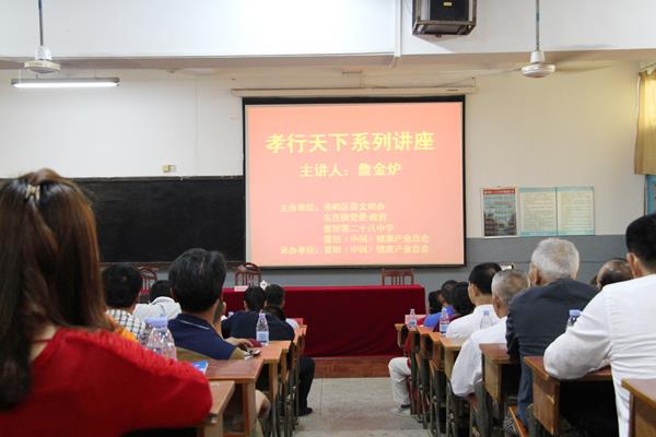 为弘扬中华民族的孝亲敬老的传统美德,近日,由秀屿区文明办,东庄镇党委、政府,莆田第二十八中学,莆田(中国)健康产业总会联合举办的“孝行天下”主题公益讲座在莆田二十八中举行。讲座邀请秀屿区妈祖文化交流中心主任、中华妈祖研究院讲师、莆田学院文化学院客座教授詹金炉主讲。