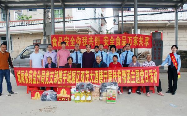 本报讯 4月20日,城厢区食品药品监督管理局党支部在华亭镇万板村开展以“精准扶贫+食品药品进乡村”为主题的支部主题党日活动,这次主题党日活动,既是城厢区食药监分局深入推进“两学一做”学习教育常态化制度化的重要内容,也是将主题党日与食安创城、精准扶贫工作的有机结合,达到了互帮互助和增强党员党性修养的目的。