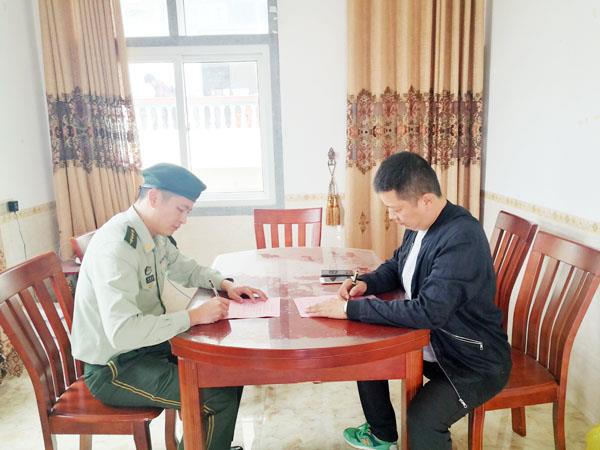 本报讯 日前,石城边防派出所组织官兵深入辖区逐一与用工单位签订打击“三非”外国人工作责任状。据了解,该责任状明确了用工单位在招收员工时应该注意的事项和履行的义务,要求用工单位落实用工责任制,坚决杜绝招收和雇佣非法滞留、非法入境的外国人,如发现“三非”外国人相关情况,应第一时间向公安机关报告。此外,该所还深入用工单位厂区、宿舍对用工情况进行了实地检查,及时消除了工作隐患和死角。当日,该所共与辖区8家用工单位签订了责任状,有效地形成了工作合力,强化了社会面管控,为打击“三非”外国人工作奠定了坚实基础。 (许伟伟 许金忠)
