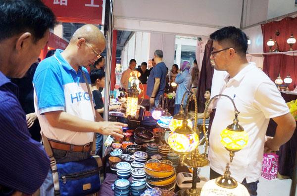 “这个马赛克灯真漂亮,怎么卖?”在土耳其展位前,一位市民正在与来自土耳其的李强进行交流。绚丽多彩的土耳其玻璃马赛克灯,让人眼前一亮这些灯具由色彩斑斓、形状各异的,参展商李强告诉记者,玻璃碎片手工粘贴而成,每一盏都是独一无二,而且随着灯内部光源被点亮,它所发出的那种温暖而浪漫的光彩,让人有种置身于童话世界的感觉。李强告诉记者,他去过许多地方参展,但是莆田他是第一次来,艺博会的规模让他吃惊不已,他对莆田的印象非常好,以后有机会还会继续参加展会。