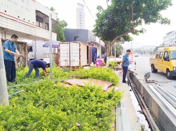 路政人员在巡查中发现,位于G324线122K+570(原国道福厦线138K+900)左侧枫亭镇秀峰村附近路段,有两名施工人员未经许可,将施工物件随意堆放于路面,擅自挖掘道路沿线绿化带,搭盖房屋建筑,且未设置安全警示标志,给过往车辆通行带来极大安全隐患。路政人员当即责令施工人员停止作业,并联系责任当事人到场,告知当事人该行为已违反公路法相关规定,严重侵害了路产路权的完整性。截止发稿,路政人员已责令当事人拆除房屋搭建基础,清理道路路面施工残渣,同时通知下属班站人员对于被破坏的绿化带植被进行补植补种工作,确保道路行车交通安全。