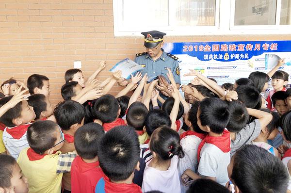 据悉,此次宣传活动还走进了课堂。课堂上通过发放交通安全宣传手册、路政宣传单、PPT讲课、交通安全知识提问等形式开展。路政人员以学生们喜闻乐见的卡通人物和浅显易懂的文字,向学生们解释何为路产、如何养护公路,并结合涉路违法行为的典型案例,让学生们了解到路政执法人员的日常工作,同时宣传安全文明出行知识,杜绝不文明交通行为,提升学生遵守交通法律法规的自觉性和爱路护路意识。课堂最后,路政人员还号召学生们通过“小手拉大手”,带动父母、亲属、周边人群,了解公路、关心公路、爱护公路。