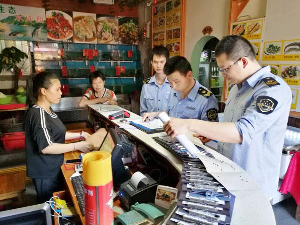在检查中发现,个别经营单位存在食品从业人员健康证明过期、食品购进记录不全、食品与非食品混存乱等不规范现象。执法人员当场对检查出的问题下达整改通知书,责令企业限期整改。