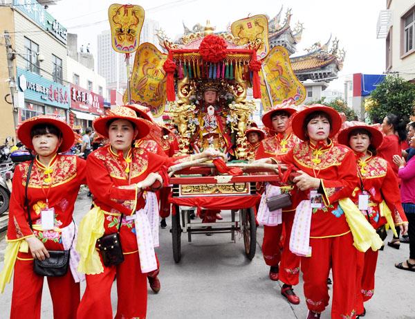 用大产业理念推动妈祖文化与产业深度融合。要以建设世界妈祖文化中心为主线,挖掘整合域内妈祖文化资源,开发妈祖文化体验游、民俗游和朝拜游等专线,做深做透妈祖文化旅游特色。要实施妈祖文化带动战略,制定“妈祖文化+旅游”计划,着力打造“清新福建、妈祖圣地、美丽莆田”旅游品牌。2017年9月3日至5日厦门会晤期间,莆田木雕亮相福建非物质文化遗产展,受到国内外嘉宾关注。要乘金砖东风,实施“妈祖文化+工艺产业”计划,依托我市雄厚的工艺产业基础,加强妈祖文化主题创意产品研发,推动工艺美术产业聚合发展。