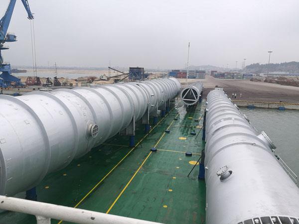 5月15日,在莆田海事局秀屿港海事处执法人员的现场监管服务下,直径5.6米、昌67.75米、重达266.8吨的环乙酮塔在秀屿莆头港成功滚装上岸,这是该港区建成以来装卸的单体重量最大、难度最大的设备。