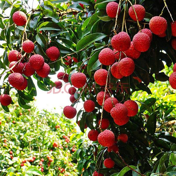 8、其树晚熟。其实广上而圆下,大可径寸有五分,香气清远,色泽鲜紫。壳薄而平,瓤厚而莹,膜如桃花红,核如丁香。毋剥之凝如水,精食之消如绛雪,其味之至不可得而状也。(蔡襄《荔枝谱》第二)