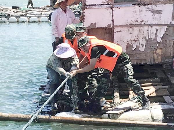 本报讯 针年对今年第8号超强合风“玛莉亚”来袭易出现大风、汛情等实际情况,平海边防派出所立即成立“防台工作小组”,全警出动、分组出发,官兵们深入辖区码头、渔排等重点地带,积极劝导渔民、渔排养殖务工人员做好安全撤离工作,并帮助渔民抢收海产品。同时,该所还全面排查码头、渔排、地势低洼地带存在的安全隐患,及时引导船舶回港避风,为渔民加固渔排、渔船。另外,官兵们还对辖区沿海一线沙滩滞留游客进行劝离,讲解台风来临前水中嬉戏潜在的安全风险,提醒游客及时撤离。