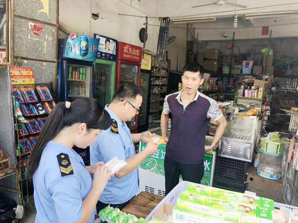 图为龙桥食药监所执法人员,在辖区考点周边食品经营企业考前食品安全专项检查现场,认真核对食品的相关信息,并对经营者提出考试期间食品经营注意事项。