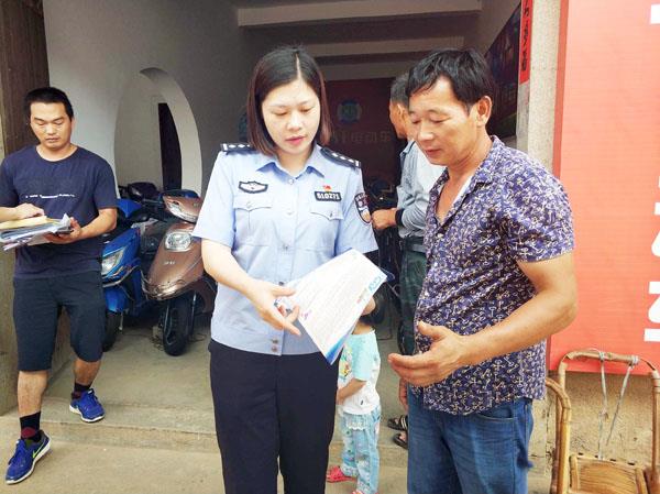 本报讯 日前,城厢公安分局户政科干警一行深入东海镇蔡亭村开展进村入户“大走访、大排查、大化解”活动。当日共走访群众30人次,分发宣传材料40余份,收集意见和建议15条,接受群众咨询16人次,现场解决问题11个,为群众解决双重户口、无户口等疑难问题5个。 (时报记者)