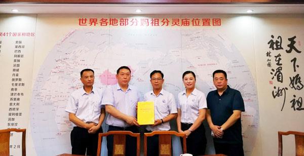 本报讯 6月19日上午,阿根廷华侨代表一行13人,在阿根廷地产协会主席、阿根廷金字塔建筑建材有限公司董事长陈荣华的带领下,来到妈祖文化发祥地湄洲岛,向湄洲妈祖祖庙咨询在阿根廷首都布宜诺斯艾利斯筹建妈祖庙相关事宜。民革市委副主委、湄洲妈祖祖庙董事长林金赞与阿根廷侨胞一行座谈交流,并就部分建议达成一致意见。