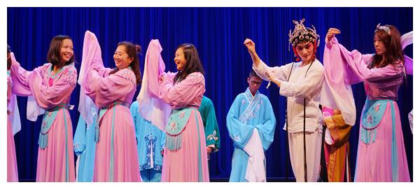 营员们步入仙游县鲤声大剧院,观看《白兔记》、《春草闯堂》等经典莆仙戏选段,营员们还上台向鲤声剧团师傅们学习莆仙戏表演,演员互动,扮上莆仙戏中的生、旦、丑、老生等经典角色,在浓浓乡情中跳动着华裔青少年的中国心。
