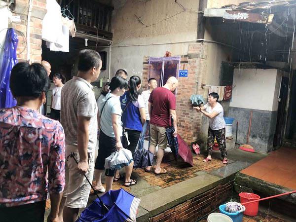 随后,为切实杜绝潜在危险,戴益带领网格员吴志军同村干部对辖区内的山塘水库、建筑工地、老旧房屋进行再巡视。巡视过程中,巡视人员发现五百里工地亦出现滑坡现象,工地附近公路被淤泥石头大面积堆积,工地房屋后面部分山体滑坡,淤泥堆着快至窗沿,富洋村干部立即通知工程队前来进行处理。巡视人员还对住在老旧房屋中的群众进行关怀慰问,确认村民家中是否安全之后,并进行群众转移,将村民安置在村里的临时安置点。对暂时无需转移的群众,细心的网格员吴志军还将网格联系卡分发给村民,叮嘱他们若出现情况一定要第一时间联系他。