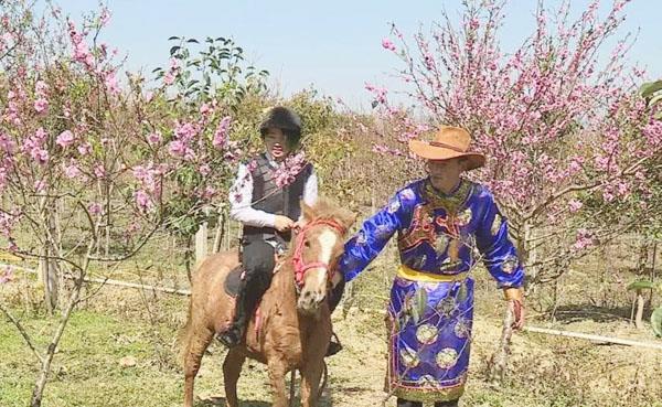 3月12日,笔者慕名来到樱花谷,但见樱花谷内满眼樱花木和桃花林,既有尚未发芽长枝的冬眠樱花苗,又有成片早开的樱花在暖阳中展露身姿,更有上千株桃花竞相开放、馨香宜人,婀娜多姿、形态各异,好比天上白云的形状,让人目不暇接,神迷心醉。漫步樱花丛中,绚烂开放的樱花香得扑鼻;最浪漫的是,樱花谷今春推出的走马观花乡村风土人情游项目,更是成为园内一道最绚烂的风景线,一个个骑着赤马的游客或穿上淑女古装娇嗔,或一身侠士打扮耍酷,陶醉在“桃之夭夭,灼灼其华”的桃花林美景之中,确实是一种难得的走马观花体验,突显出唯美浪漫的田园气息,着实吸引眼球,顿觉进入三生三世十里桃花的美丽动人,沉醉花下便是人生乐事。“真是太漂亮啦,我约亲朋好友来看,骑骑马,拍拍照,看看花,心里特别轻松。”正在樱花园里拍照的游客林双惠高兴地说。