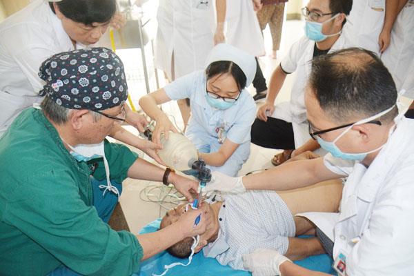 危机关头,莆田学院附属医院康复医学科、全科医学科、胸心外科、急诊科、肾内科以及麻醉科等科室的近10名医护人员闻讯先后赶赴现场,对林某进行奋力救治。经过医护人员的通力协作,林某恢复心跳呼吸,随后被安全护送到重症医学科继续救治。