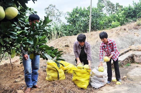 山顶林戴帽,山下稻米香;山中果飘香,山间路缠腰。在仙游县大济镇政府西北部5公里的汾阳村马宫山上,一大片绿油油的文旦柚园里果实累累挂满技头,在早晨阳光照射下青翠欲滴,许多员工在果园里忙碌着采收文旦柚。有拉下树枝剪摘的,有挑着文旦柚穿梭在果园里,她们不顾身上的汗水,快步不停地赶进场地,有的分拣装袋、有的过磅装车,个个忙碌着手中活,装满文旦柚的车辆沿着盘山公路徐徐下山运往全国各地。