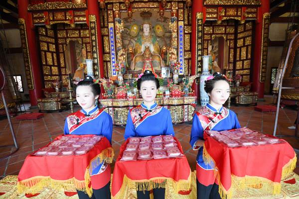 同时,为引领更多善信了解妈祖文化和参观祖庙景区,将在南轴线天后殿内,免费为20人及以上人数的祈福团队,以中国三大祭典的《妈祖祭典》为模板,浓缩成以鲜花、青果、香茗(寿面)为献礼,以海平、和平、咸平之乐为伴奏,由通赞上申吉祥植福疏文,向妈祖礼行三献的祭拜仪式。