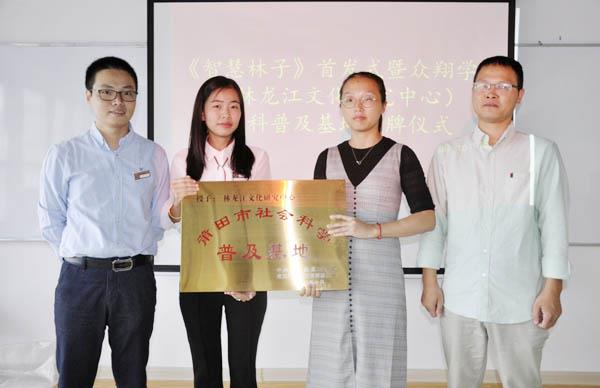 10月13日,市委宣传部、市社科联授予林龙江文化研究中心(众翔学校)为“莆田市社会科学普及基地”,传播林龙江文化,弘扬爱国精神。