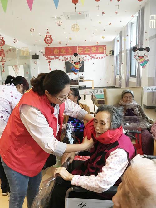 本报讯 桂拂清风菊带霜,又是一年重阳到。为大力弘扬中华民族尊老敬老的传统美德,进一步倡导敬老、爱老、助老的新风尚,让老年人度过一个温馨愉快的重阳佳节,10月17日上午,鲤城街道综治(网格)中心、鲤城街道团工委联合开展“青春之光”展风采,敬老爱老志愿行”志愿服务活动。