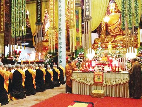 各殿堂供奉的各种佛像,是佛寺内饰的核心任务。其数量多达几百种,无不精心设计制作。天王殿笑容满面的弥勒佛,高大威猛的四大天王;大雄宝殿趺坐的三世教主释迦牟尼佛、药师佛、阿弥陀佛,殿后端坐的代表佛教教义悲、智、行的坐莲观音、骑狮文殊、坐象普贤三士像,及列坐佛陀大弟子十八罗汉;文殊阁雍容华贵的文殊菩萨,观音阁娴静秀媚的观音佛;罗汉堂五百尊罗汉,济济一堂,神态举止,栩栩如生,等等。无不通过雕塑的艺术手段,制出流金溢彩、形神兼备的佛像。既是宣扬佛法的化身,同时亦是一件精美的艺术品,予人精神上的寄托与艺术上的享受。