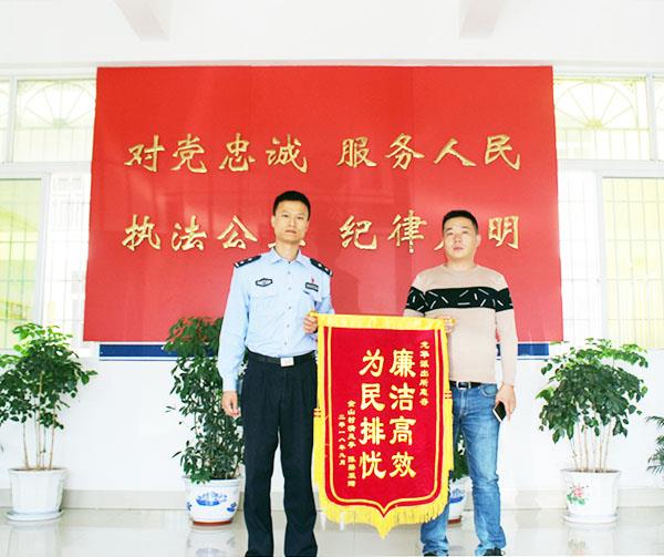 近日,仙游县龙华镇金山村村民陈锦发将一面“廉洁高效、为民排忧”的锦旗送到龙华派出所民警张建挺手上,感谢民警为其妹妹申报户口。