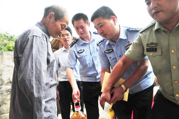 本报讯 近日,城厢公安分局局长林一虎带领分局“精准扶贫”工作组到东海镇西厝村开展走访慰问工作,林一虎要求民警要像走亲戚一样经常到结对帮扶的对象家中关心他们的生产生活情况,及时解决出现的各种问题。图为林一虎局长为贫困户送去慰问金和慰问品。 (张国林)