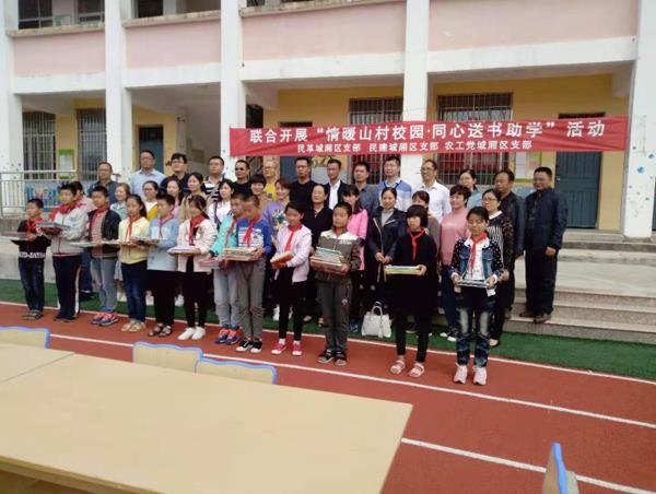 本报讯 近日,在民革城厢支部主委郭妙桑、民建城厢支部主委吴洪云、农工党城厢支部主委潘仁东的带领下,三个党派一行近30人驱车前往东海镇坪洋小学,送去童话故事书、幼儿图书册、科普图书、国学等书籍375册,总金额7987元,为城厢区偏远贫困山村薄弱学校学生能有更多的课外书籍阅读提供帮助,进一步丰富山区学生的课余生活,助力山区学生从小学习和传承我国优秀传统文化,从小培育和践行社会主义核心价值观,进一步开拓视野,增长知识。 (郭妙桑 郑协)