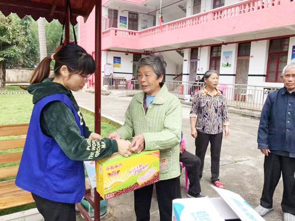 本报讯 10月19日,仙游县度尾镇团委、工会和综治(网格)中心的十余名青年志愿者到后埔村百老汇养老院开展“情暖夕阳 关爱老人”主题志愿服务活动,为60名老年人献爱心、送温暖,给老人们带去物质支持和精神关怀。