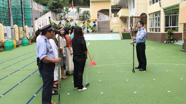 又讯 日前,凤凰山派出所到城厢第一实验幼儿园开展反恐演练。演练中,民警组织校园安保人员认真学习了安保人员的职责与权限,讲解了校园保安职责任务、执勤方法等实用知识,就盾牌、钢叉、伸缩棍、催泪瓦斯等警械的使用方式方法进行培训,组织实地操作,对不规范动作逐一进行纠正和讲解。民警还组织学校安保人员、老师开展模拟对抗演练,进一步提高校园处置突发事件的能力和水平。 (柯益妹)
