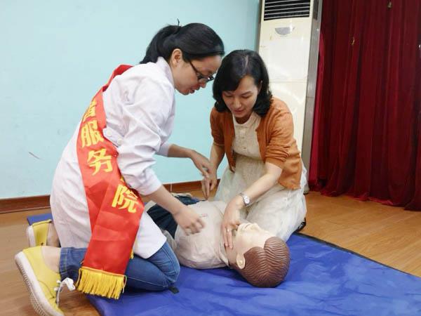 在此次培训中主讲了海姆立克急救法、溺水急救、心肺复苏术、烫伤急救,并通过现场模拟示范,详细地进行动作演练,教师们认真地听讲并纷纷参与模拟操作。