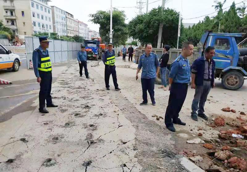 11月4号,涵江公路分局许可所联合涵江交通执法大队在日常公路巡查时发现,在国道324线72K+400至420路段有施工队伍在公路辅道上破路施工。现场开挖一个工作坑约12平米,沥青路面被破坏约40平米。经现场了解,原来为配合福厦高铁建设,某施工单位未经相关部门审批,擅自破路对埋设的给水管道进行路径改线施工。