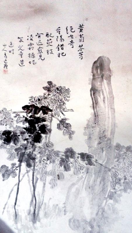 ▲款识:黄菊芬芳绝世奇,重阳错把配萸枝。开迟愈见凌霜操,堪笑儿童道远时。山人秀廷画。